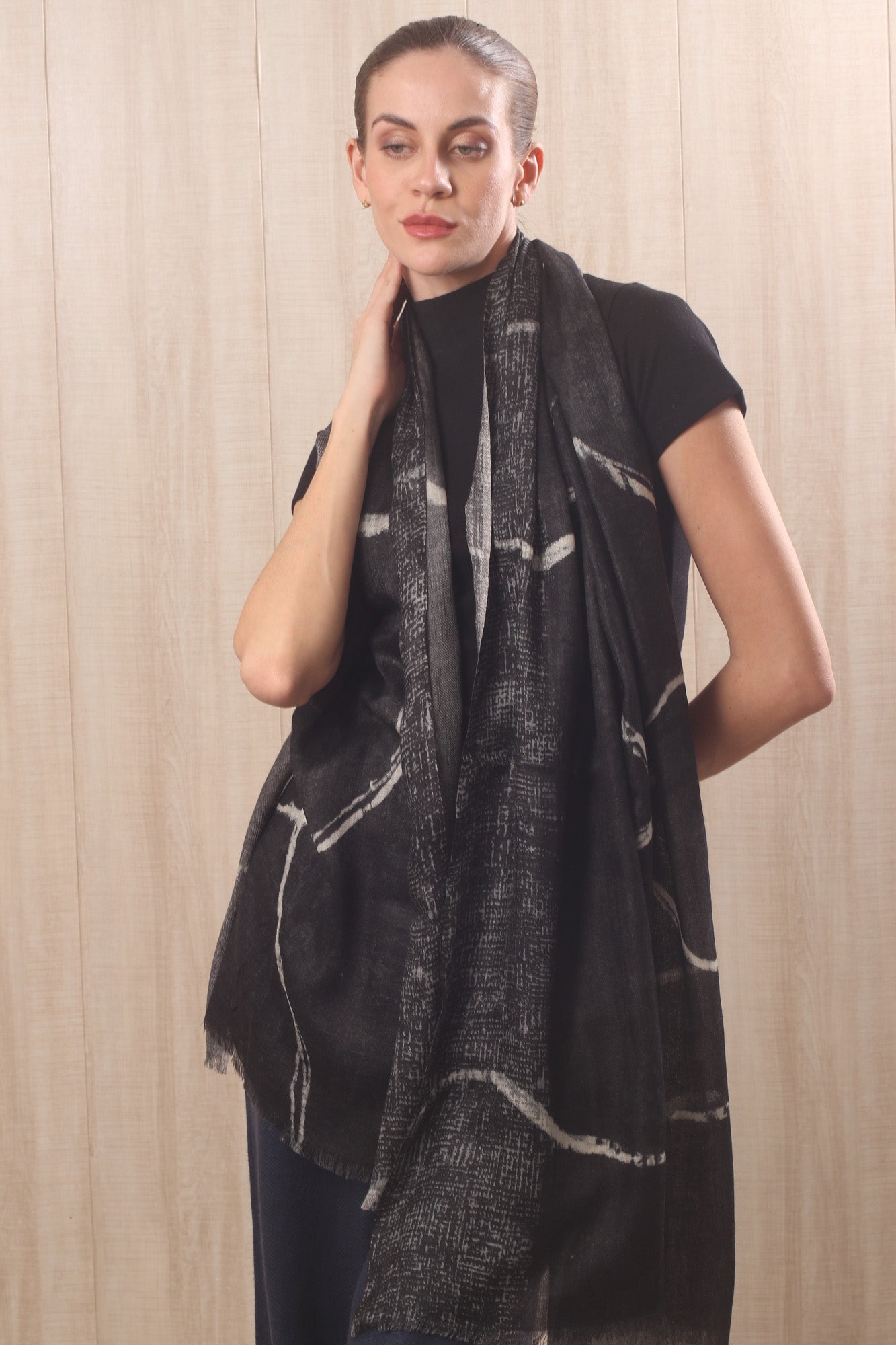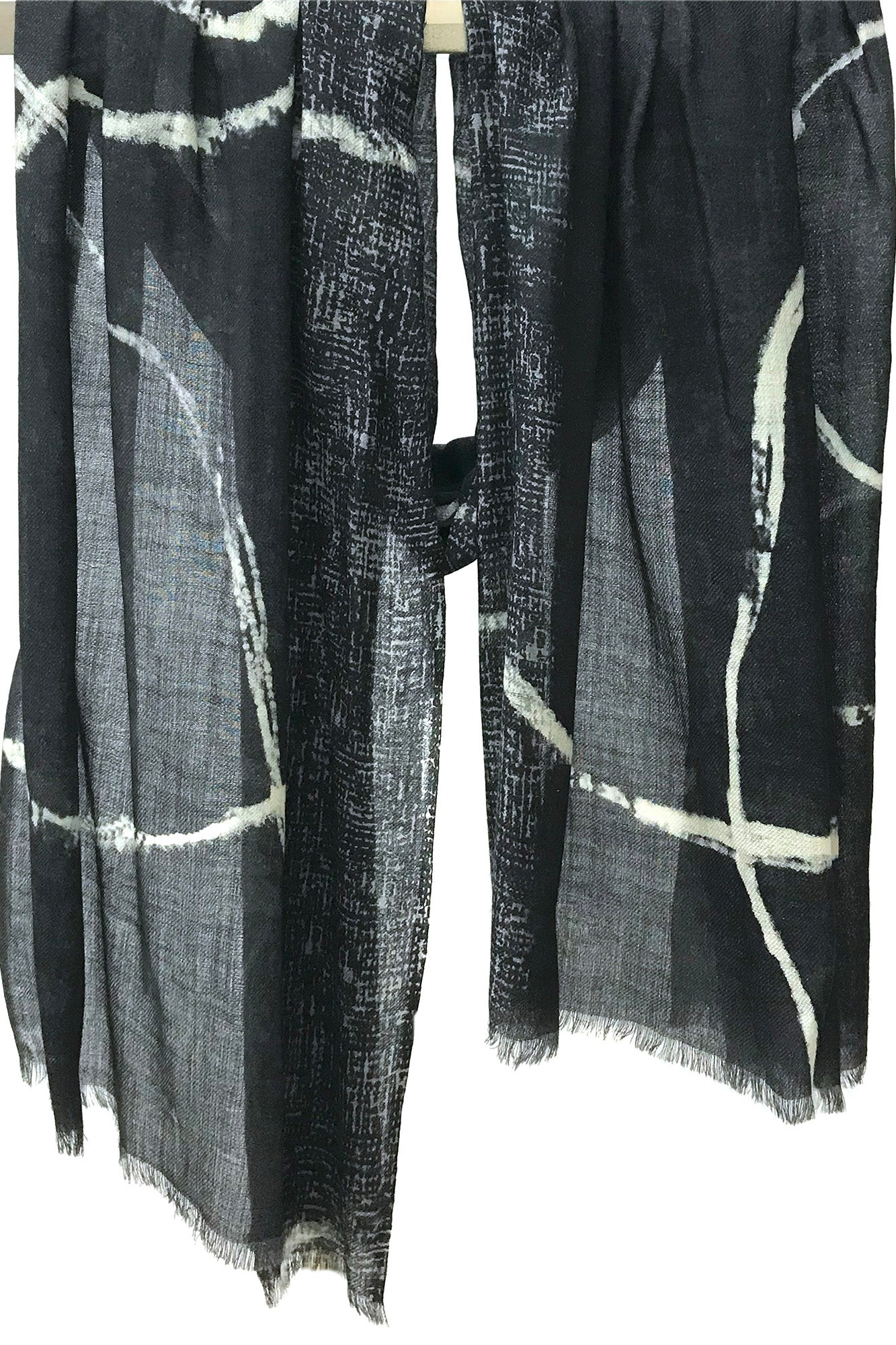 wool cashmere black & white abstract brushstrokes scarves