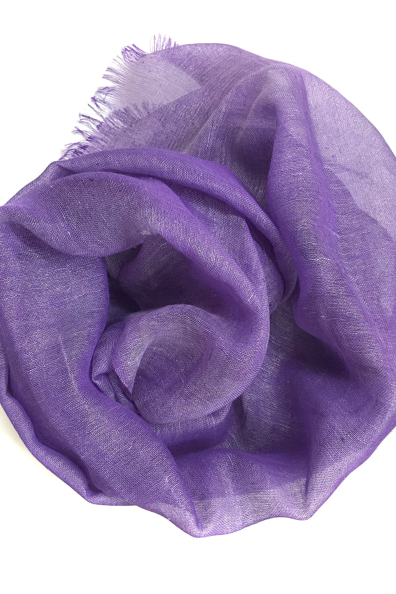 Elevate your style with our Violet Silk Linen Cashmere Scarf. Luxuriously soft and richly colored, it exudes sophistication and timeless elegance, perfect for the discerning fashion enthusiast.