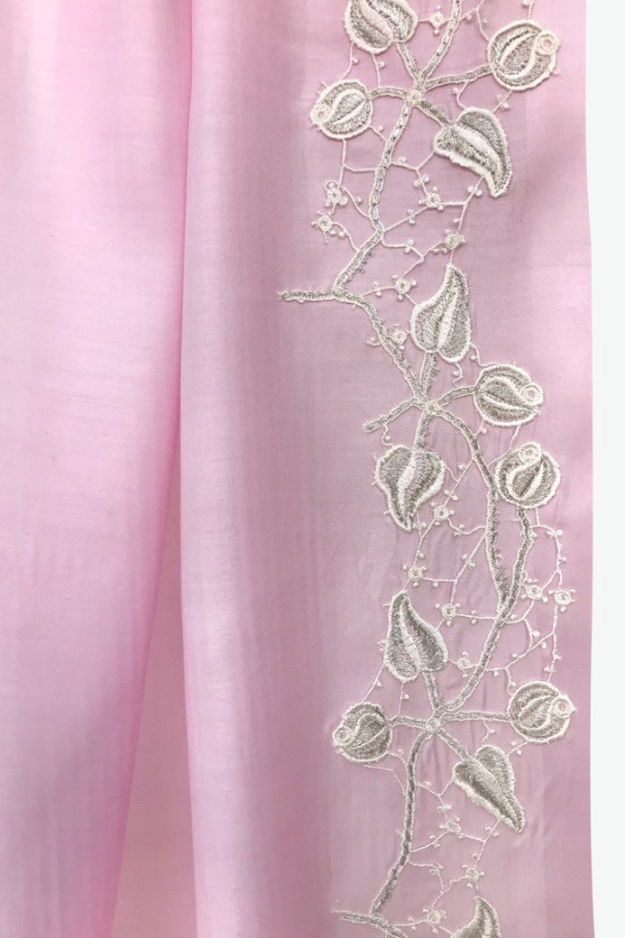 Pink Embroidered Silk Wool Scarf