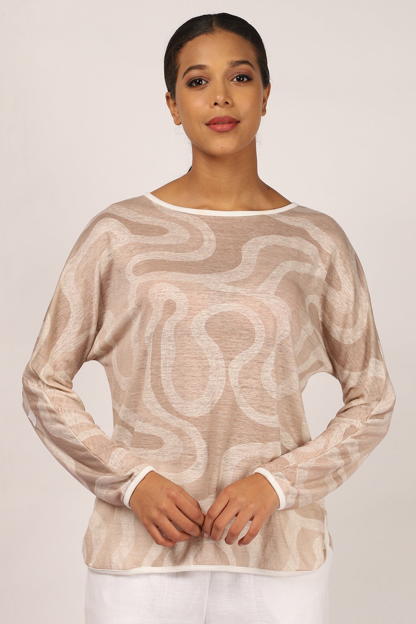 Beige-Abstract-Silk-Linen-Matching-Set