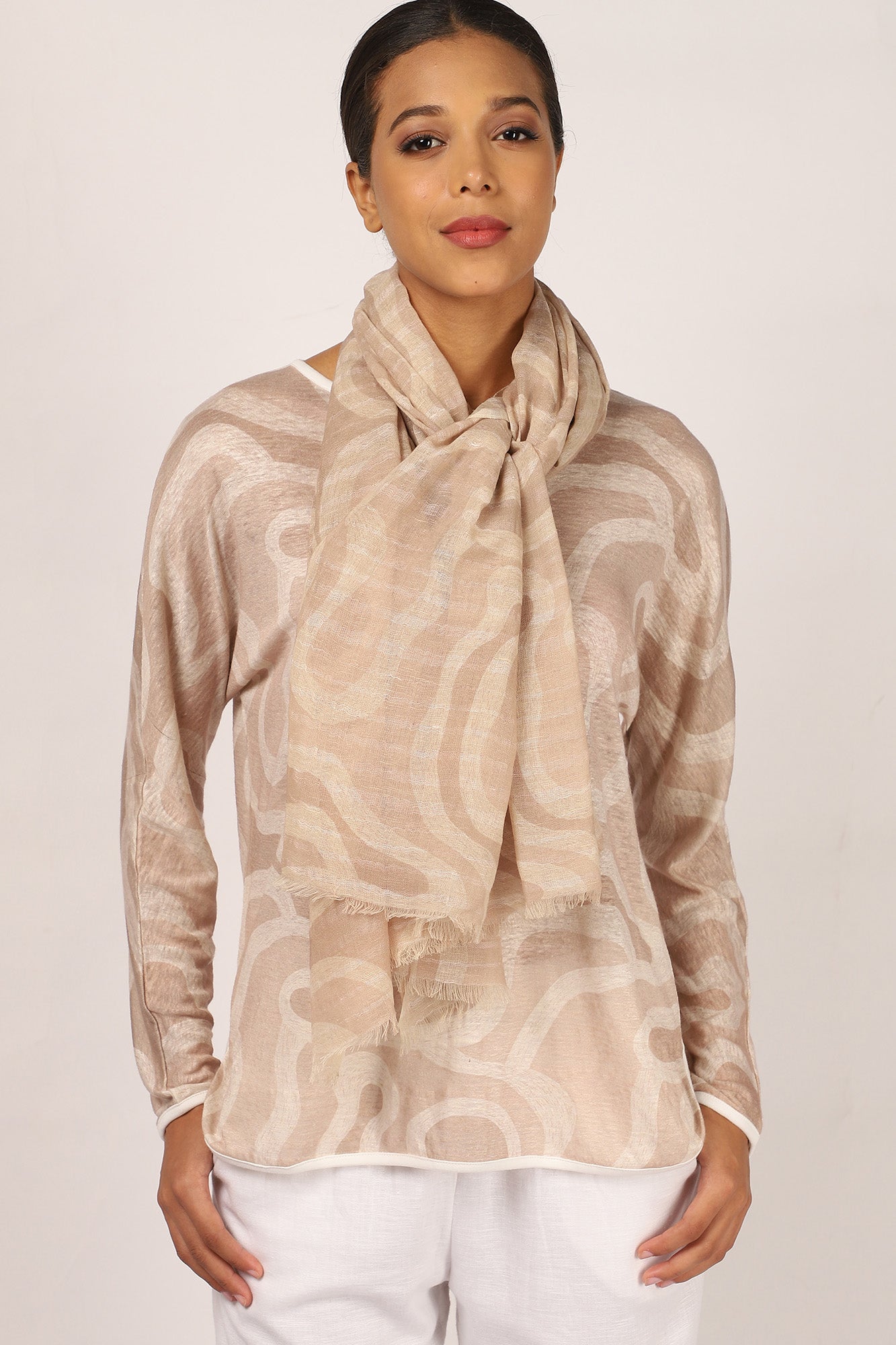 COMPOSITION: 100% Linen (T-shirt), 80% MODAL 7% SILK 7% WOOL 6% CASHMERE (Scarf)