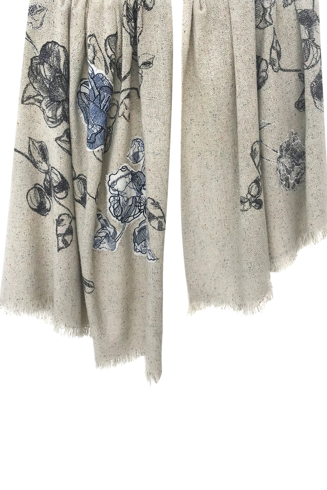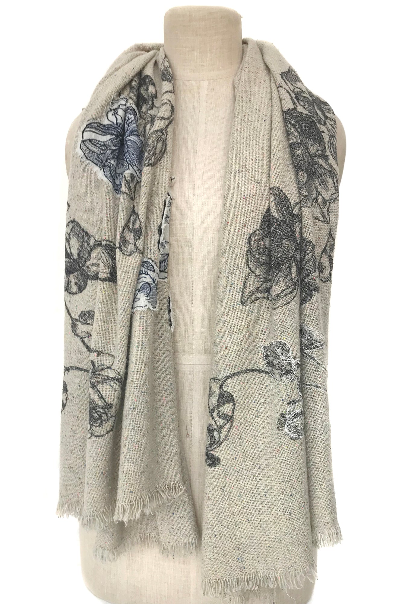 Silk wool Cashmere - Floral Monochrome Illustration Scarf