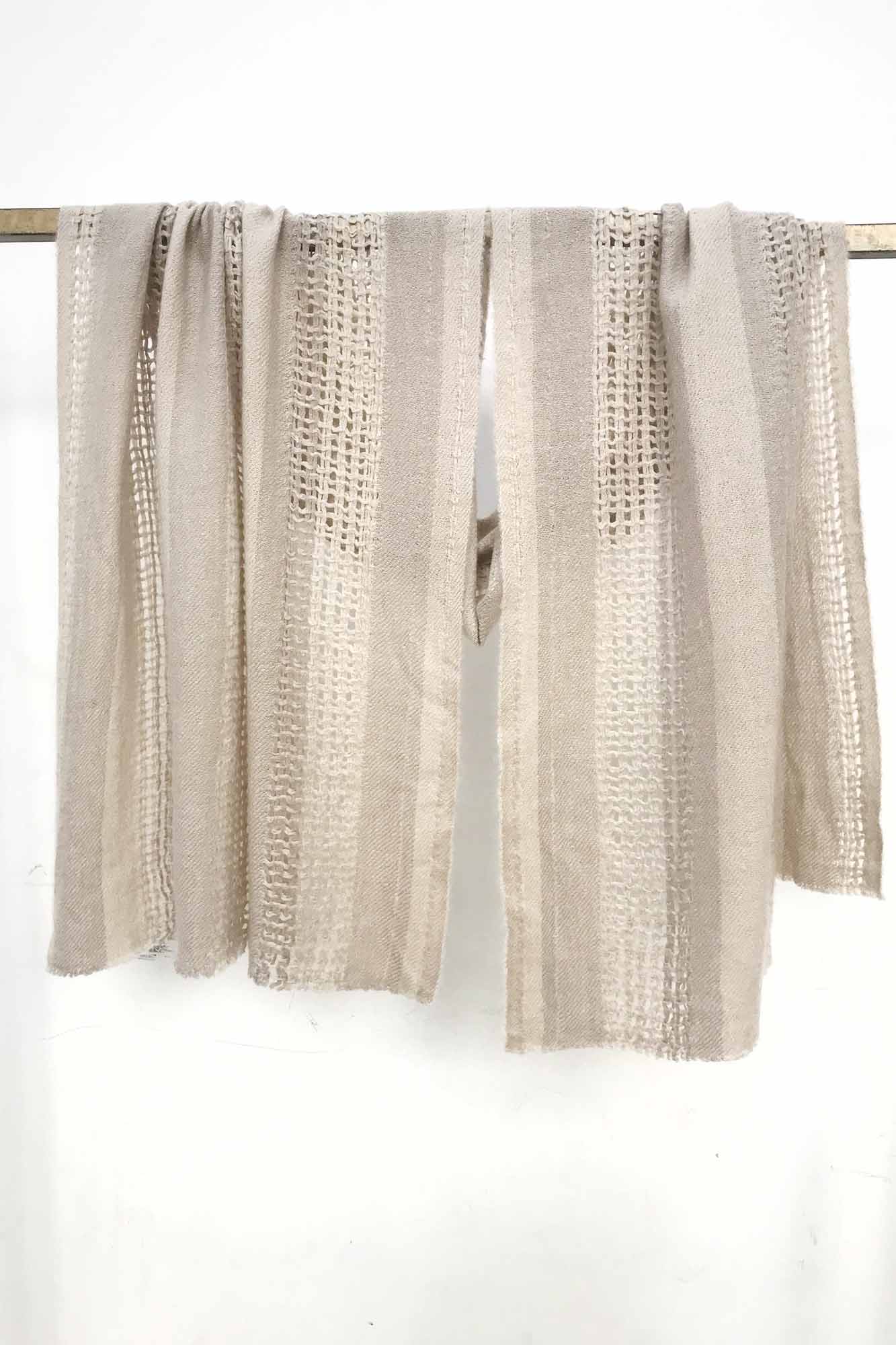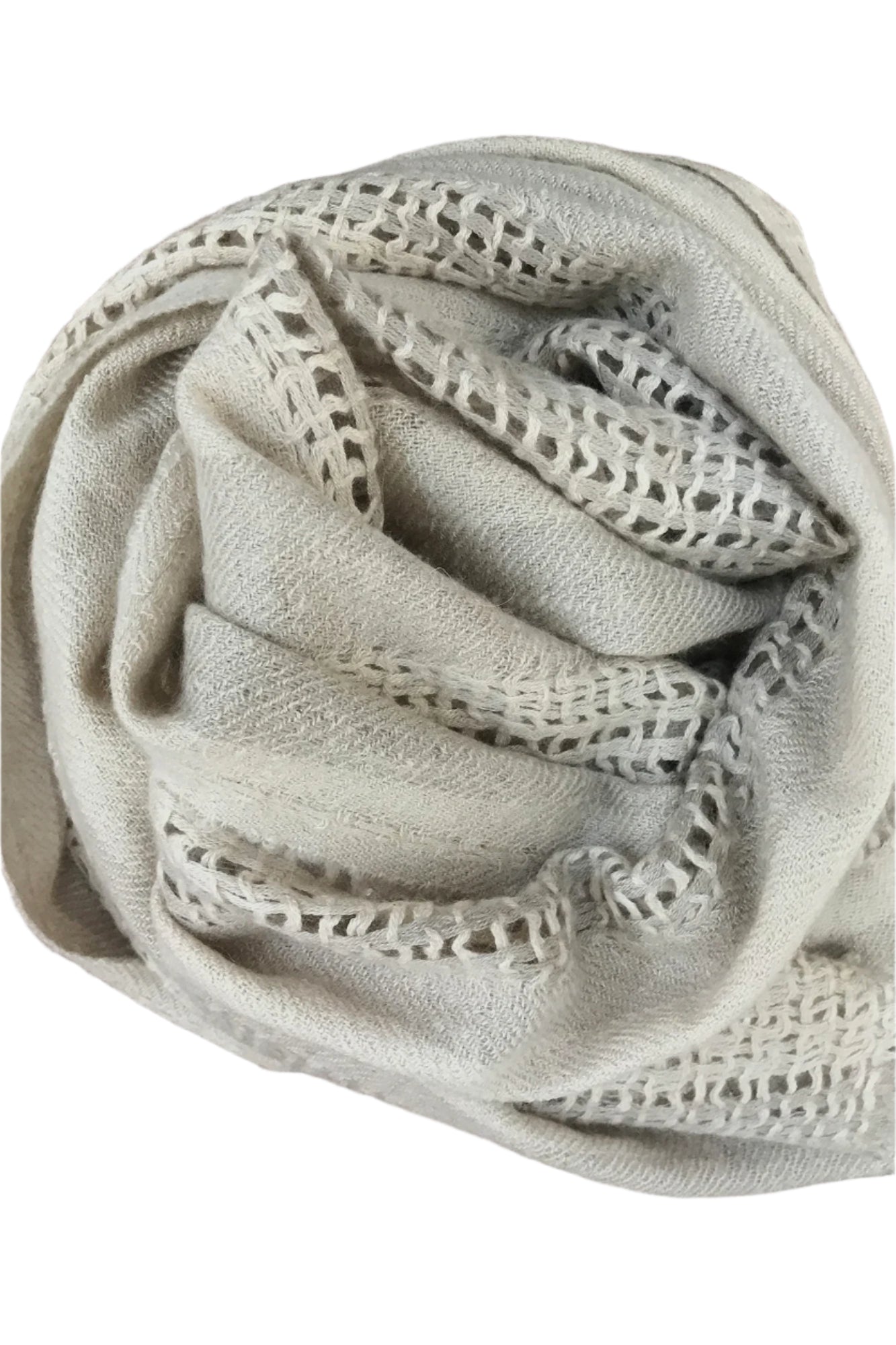 Experience luxury with our Beige Pure Cashmere Scarf. Crafted from 100% cashmere, it's soft, warm, and versatile. Perfect for any outfit, it offers timeless elegance and comfort.